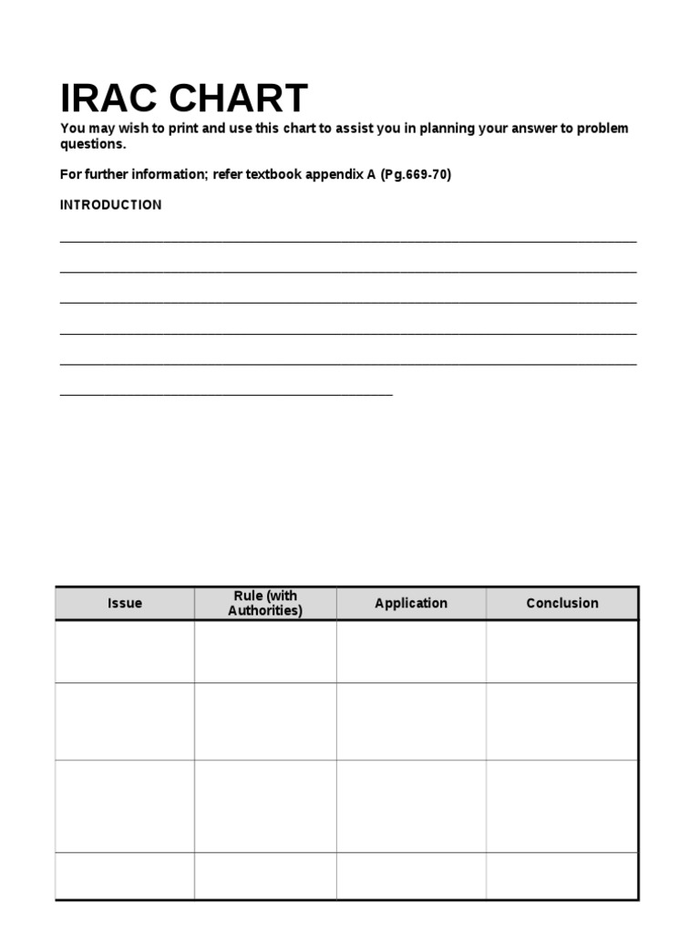17. IRAC with cases - sample memo - YouTube from i.ytimg.com This will help you sort. Issue, rule, application, and conclusion. Advancing freedom of and from religion. We are dedicated to the ongoing pursuit of a just israeli society: For example, a business's street address is probably not relevant to the court's decision of the issue of whether the business that sold a Irac is prolonging the effectiveness of insecticides, acaricides and traits by implementing insecticide resistance management strategies, countering the development of resistance in the three core sectors of traditional crop protection, plant biotechnology and public health. The irac method is the standard of legal writing, structured to communicate logical reasoning in a precise fashion. Aug 20, 2014 · irac example 1 irac example 2.